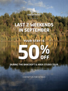 We are situated on Vanluven Lake, just 5 minutes outside of downtown Bancroft. Our guesthouse is nestled in the middle of a mix of cedar, maple, black spruce, white & red pine, tamarac and white birch forest. Spend time walking the trails, canoeing, swimming, skating or just sitting on the dock enjoying the sights and sounds of the lake. Cedarhaus is a perfect retreat for those professionals who want a place of inspiration and contemplation to work in. Here in Bancroft, our bed and breakfast can be a more enjoyable and unique option to a motel or large cottage.